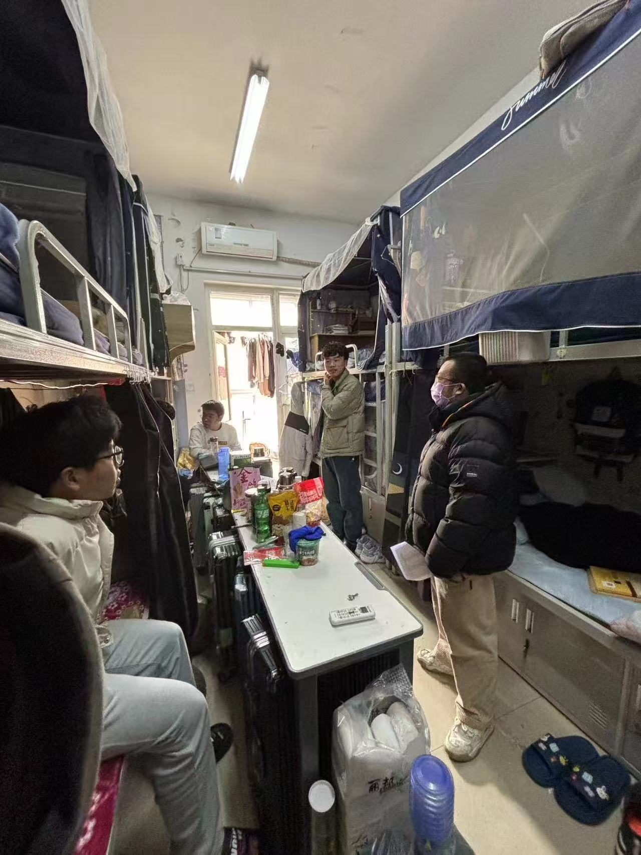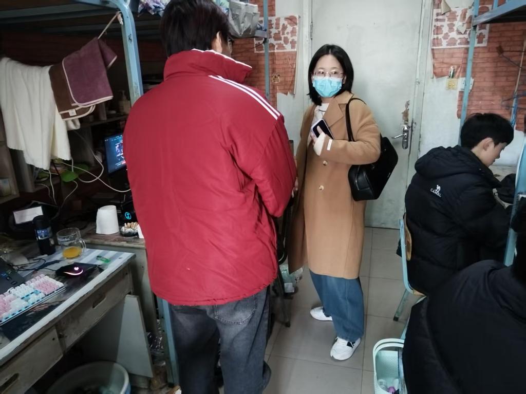 辅导员深入员工宿舍,与员工亲切交谈,每到一处,辅导员都要强调寝室用电安全、卫生整洁等事宜,对环境卫生较好,宿舍氛围活跃的宿舍进行表扬,对存在问题的寝室提出整改建议和鼓励关切。