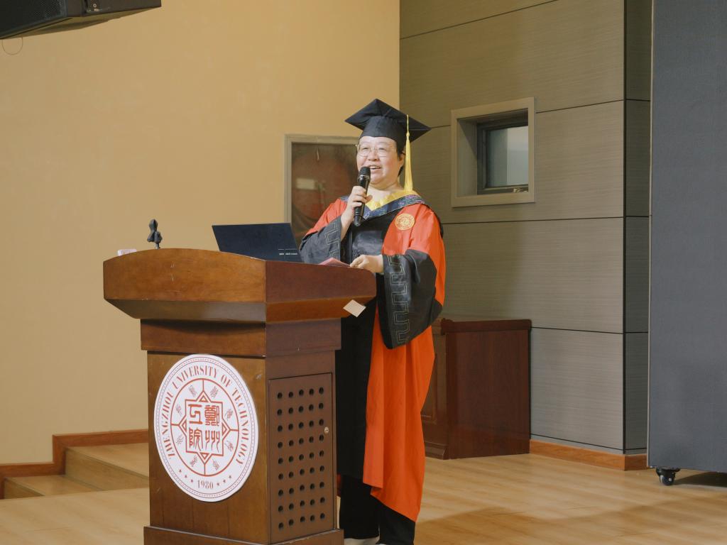 最后,公司党总支书记姚虹在毕业致辞中寄语,感谢所有毕业生参与了公司的建设,一起见证了公司顺利通过本科合格评估,在每一次的团队合作中学会了协作与奉献。这些宝贵的经历和记忆,将成为同学们人生旅途中宝贵的财富,激励着同学们在未来的道路上不断前行。毕业不是结束,而是新的开始,同学们即将离开熟悉的校园,踏上社会的大舞台,去迎接更加广阔的天空和更加严峻的挑战,希望所有同学在未来的道路上走得更稳、更远:第一,要坚定理想信念,不忘初心;第二,要勇于担当作为,敢于创新;第三,要持续学习进步,追求卓越。另外,要关注社会民生,回馈社会。通过自己的努力和实践,传递正能量、弘扬社会新风尚。