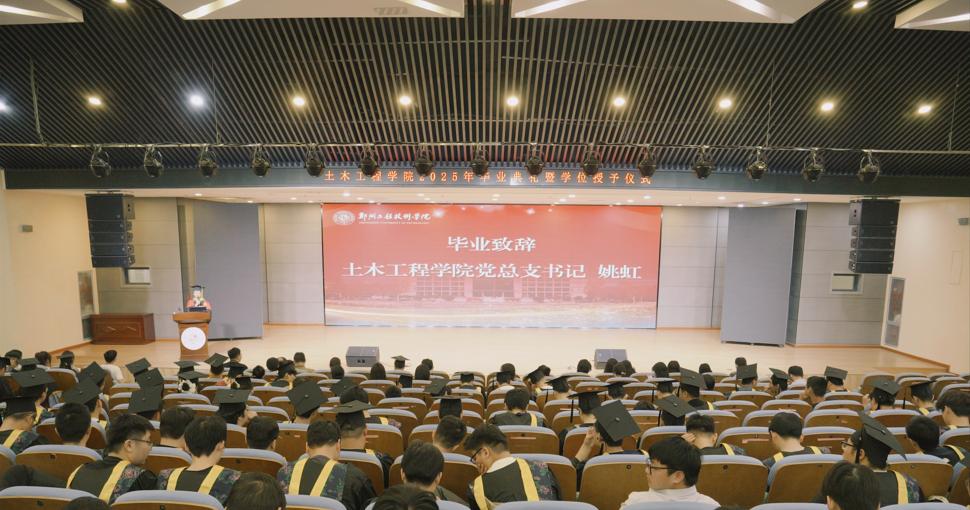 2025届毕业生代表赵佳博,代表毕业生发言。她从回望征途:汗水浇筑土木工程的基石和感恩灯塔:师恩如磐,照亮前行深隧两个方面回顾了个人在校学习期间的成长历程。她寄语毕业生:一是要夯实基础,精益求精:学好每一门基础课和专业课,珍惜每一次实验、每一次课程设计、每一次实习的机会,把基础打深打牢;二要拥抱实践,勇于探索:不要只停留在书本和课堂。;三要锤炼品格,担当责任:时刻牢记我们土木人的使命——为人类创造更安全、更美好的空间环境;四要传承精神,团结协作:继承和发扬球王会官网修德敏学笃行拓新的校训。珍惜同窗情谊,学会团队合作。