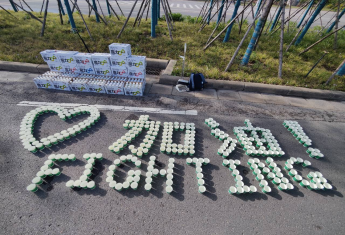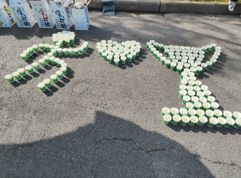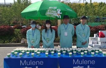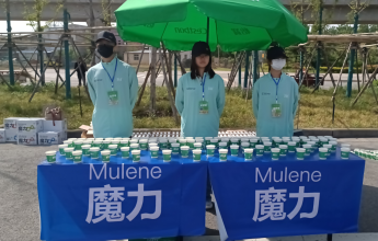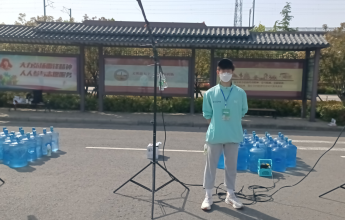 所有女同学开始运用培训所学知识,摆放桌子和桌布,将纸杯摆放整齐并按照规定倒入三分之一的饮料或水,在桌子上前三排摆放距离较大运动员好拿的距离,后面摆放三到四排比较密集的杯子,提前做好预备工作将箱子和瓶盖打开,在地上做好预备工作。同学们还用杯子摆放出各种图案,为运动员加油!