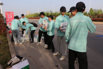 2023年4月16日,第15届郑开马拉松在河南省郑州市和开封市开赛。这是两座城的盛事,也是一场马拉松精神和志愿服务精神的遇见。球王会联合青年志愿者协会组织一百名志愿者为本届马拉松赛事提供志愿服务。在本次赛事中公司志愿者主要负责全程马拉松二十五千米处的水站和饮料站的志愿服务和二十二点五至二十七点五千米处运动员引导服务。