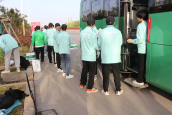 凌晨三点钟的宿舍,室友还在熟睡,我们的志愿者已经起床洗漱。凌晨四点,志愿者们在金河图书馆门前和国基广场集合完毕,坐上了开往郑开大道的大巴。