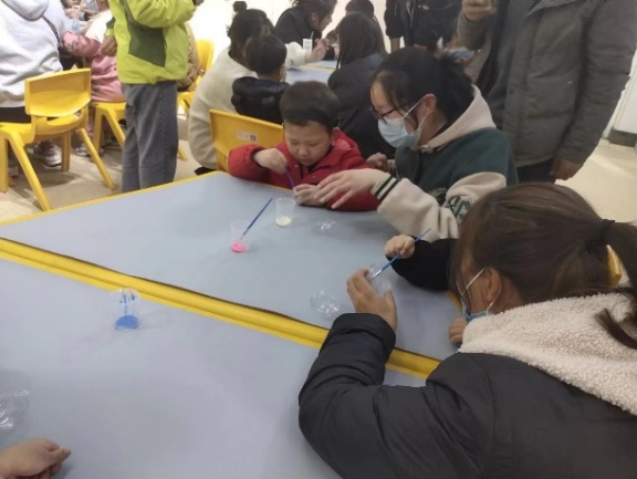进馆后11名志愿者分别和11组家长一起带小朋友参观,另一名志愿者负责组织纪律。先是共同听讲了一节魅力科学课堂,老师生动地为小朋友们揭示了光的奥秘,有趣的课堂互动拉近了小朋友们和科学的距离,小朋友们自己动手装饰小球,老师像变魔术一样让小球发出漂亮的荧光,展示了科学的奥妙。