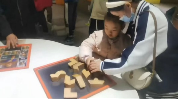 魅力科学课堂结束后,志愿者们参观体验了郑州科技馆其他有趣的小实验,小朋友们看到了球的悬浮、把不同形状的井盖对应安装好、搭建积木、完成拼图、观赏不同的镜面、探索了光的折射和声音的传播,“球为什么会飘起来?”“篮球怎样才能投进框中?”“牛顿流体为何是这样的?”“镜子里的我怎么变形了?”……小朋友们通过观察不同的科学作品,丰富了自身的想象力,对世界有了更多的好奇,对科学有了更多的兴趣。志愿者们也和小朋友一起观察科学、沟通交流,解答小朋友的疑问。