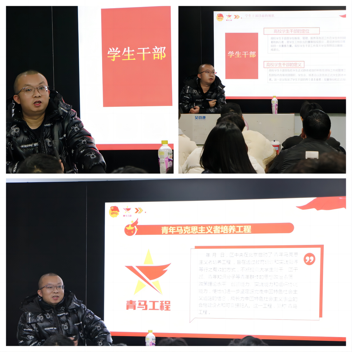 本次活动由学工办副主任王峥老师担任主讲人,主要从员工干部的发现和培养、员工干部目前的现状及“敲鼓”如何“重锤”三个方面讲述。王老师从自身的大学经历讲起,提出员工干部是员工群体中的领头羊、排头雁,是一把“双刃剑”,强调了培养员工干部的重要性。接着,主讲人详细地介绍了员工干部的定位、定义以及误区,同时与同学们进行交流互动,指出员工干部应当以身作则,争做员工友,不做员工官。最后,主讲人为同学们具体阐述了“知、情、意、行”,向员工干部提出要求:树立正确的员工观和价值观,以喜爱、热爱和钟爱去厚植员工干部情怀,能吃苦,能挨骂,会感恩,干字当头,行稳致远。