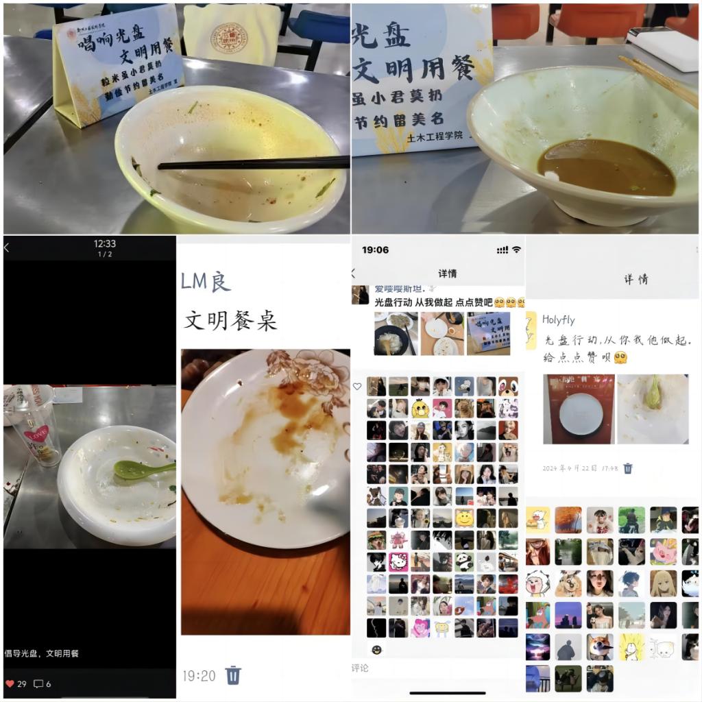 以俭立名,以侈自败。活动期间,员工会权益部干事在金河餐厅二楼张贴文明餐桌海报宣传节俭理念,制作宣传展板倡导文明行为,制作桌面展示牌警示同学们珍惜食物,并鼓励同学们在用餐后将自己的“光盘”照片上传至社交平台,并附上自己的行动宣言。这些照片展示了同学们珍惜每一粒粮食、不剩饭菜的好习惯,传递了同学们对节约粮食、保护环境的高度重视。在社交平台上,参与者们上传的照片和视频精彩纷呈。有的同学展示了自己光盘行动的成果,有的则记录了文明使用公筷公勺的瞬间。这些照片和视频不仅表现了同学们的文明素养和环保意识,也传递出了积极向上的精神风貌。同时,同学们还积极邀请家人、朋友一起参与活动,通过集赞的方式扩大活动影响力,让更多的人了解并参与到光盘行动中来。此次活动不仅让同学们更加深入地了解了文明餐桌的重要性,也通过网络平台将这一理念传递给了更多的人。相信在不久的将来,“文明餐桌”将成为每个人的自觉行动和良好习惯。