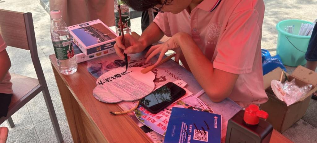 在深入了解黄河文化的同时,志愿者们也积极在社区内举办了以黄河为主题的手工艺品制作活动,如制作传统漆扇、制作黄河元素拼图等,进一步促进黄河文化的宣传与弘扬。别出心裁的漆扇制作,巧妙地将黄河文化元素融入其中,在漆扇之上笔走龙蛇,写下与黄河文化相关的优美诗词。一把把精致的漆扇,不仅是巧夺天工的艺术品,更是黄河文化的鲜活载体,承载并传递着黄河文化数千年来的深厚底蕴和独特魅力。同时志愿者们为孩子们提供的关于黄河元素的拼图,从壶口瀑布的汹涌澎湃,到黄河之滨的宁静村落;从古老的水车吱嘎作响,到现代化的水利枢纽工程;从黄河儿女勤劳耕作的身影,到传统节日里热闹非凡的场景……每一块拼图都承载着黄河文化的点点滴滴,让孩子们在动手动脑的过程中,深刻感受到黄河文化的博大精深和源远流长。在孩子们进行拼图的过程中,志愿者也带他们了解和学习了拼图上黄河元素的地点以及背后的意义,让黄河文化在孩子们的心中生根发芽。