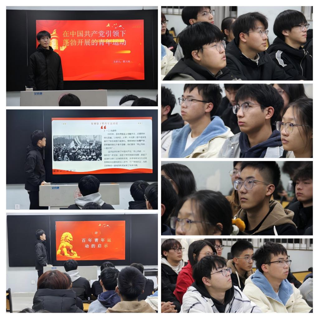 本次活动由球王会分团委副书记黄大帅担任主讲人。活动开始,主讲人以时间为轴,从五四运动到新中国成立,再到改革开放新时代,为学员们生动地再现了党领导下的青年运动的历史画卷,带领学员们感受到了青春力量。接着,主讲人解读了多方文献,诠释了中国青年的风采和中华文化的魅力,引导学员们立大志、担大任,做合格“青马人”,在土木工程领域发光发热。最后,主讲人强调,青年运动从来不是孤立的个体行为,而是广大青年团结一心、协作奋斗的集体行动。通过此次学习,学员们纷纷表示,他们不仅增长了理论知识,更深刻理解了青年运动的历史使命和时代价值。