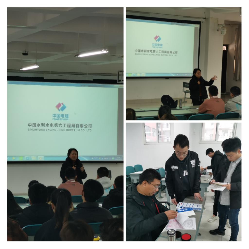 首先,企业负责人从企业背景、企业文化、发展前景、人才培养、薪金待遇等方面为同学们详细介绍了中国水利水电第六工程局有限公司,让同学们充分了解到企业信息。随后,负责人就招聘条件详细向同学们讲解,并且耐心回答了同学们现场提出的疑问和特别关注的问题。经过详细的了解,同学们现场递交了简历,参加了现场面试。面试现场员工表现积极,与招聘单位达成了有效的沟通,现场气氛热烈,通过层层筛选,22名同学通过此次招聘拿到了通往职场的通行证。