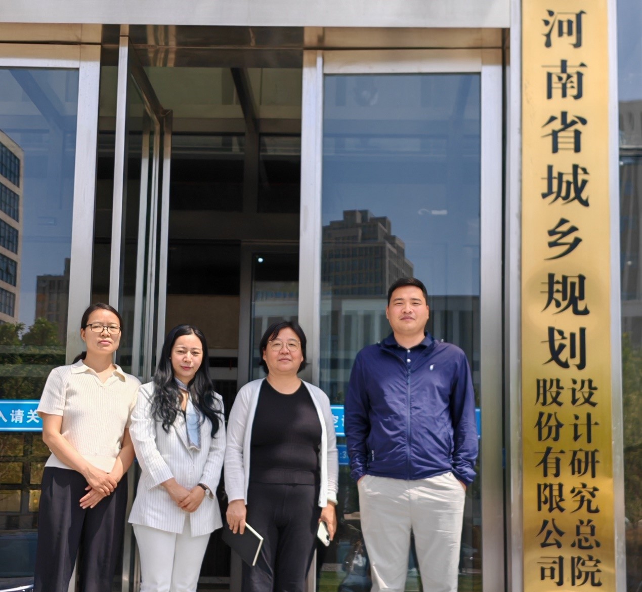 2025 年 5 月 12 日,公司党总支书记姚虹一行前往河南省城乡规划设计研究总院,开展了一场以“优化人才培养方案,拓展就业新机遇”为主题的专业调研暨访企拓岗活动。此次活动旨在深入了解行业前沿需求,优化公司专业人才培养模式,同时为员工拓展实习与就业渠道,实现人才培养与企业需求的精准对接。参加调研还有青年骨干教师王娟、苗方利及马世举博士。