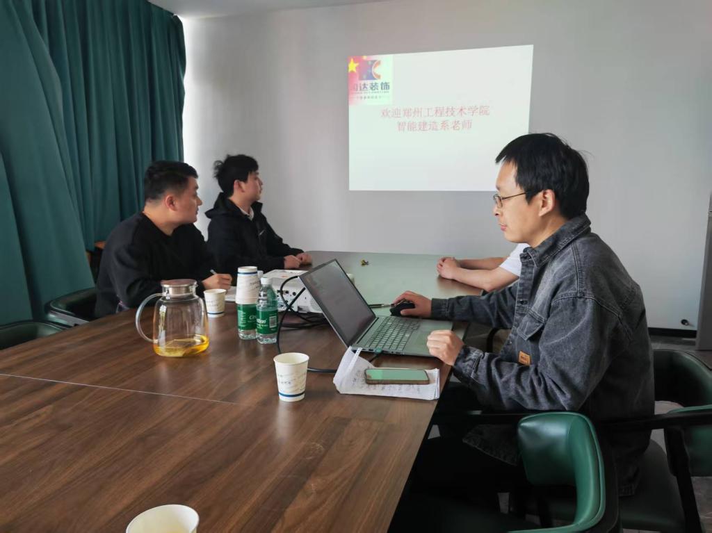 许昌千都阔达装饰有限公司总经理李新,市场部经理连辉超出席了会议,会议介绍了企业目前的发展状况及面临的困境。交流过程中,与会教师详细咨询了土木行业目前的就业环境以及发展动态,许昌千都阔达装饰有限公司领导对此进行了一一解答,并对公司智能建造专业今后的人才培养方向提出了一系列建议。